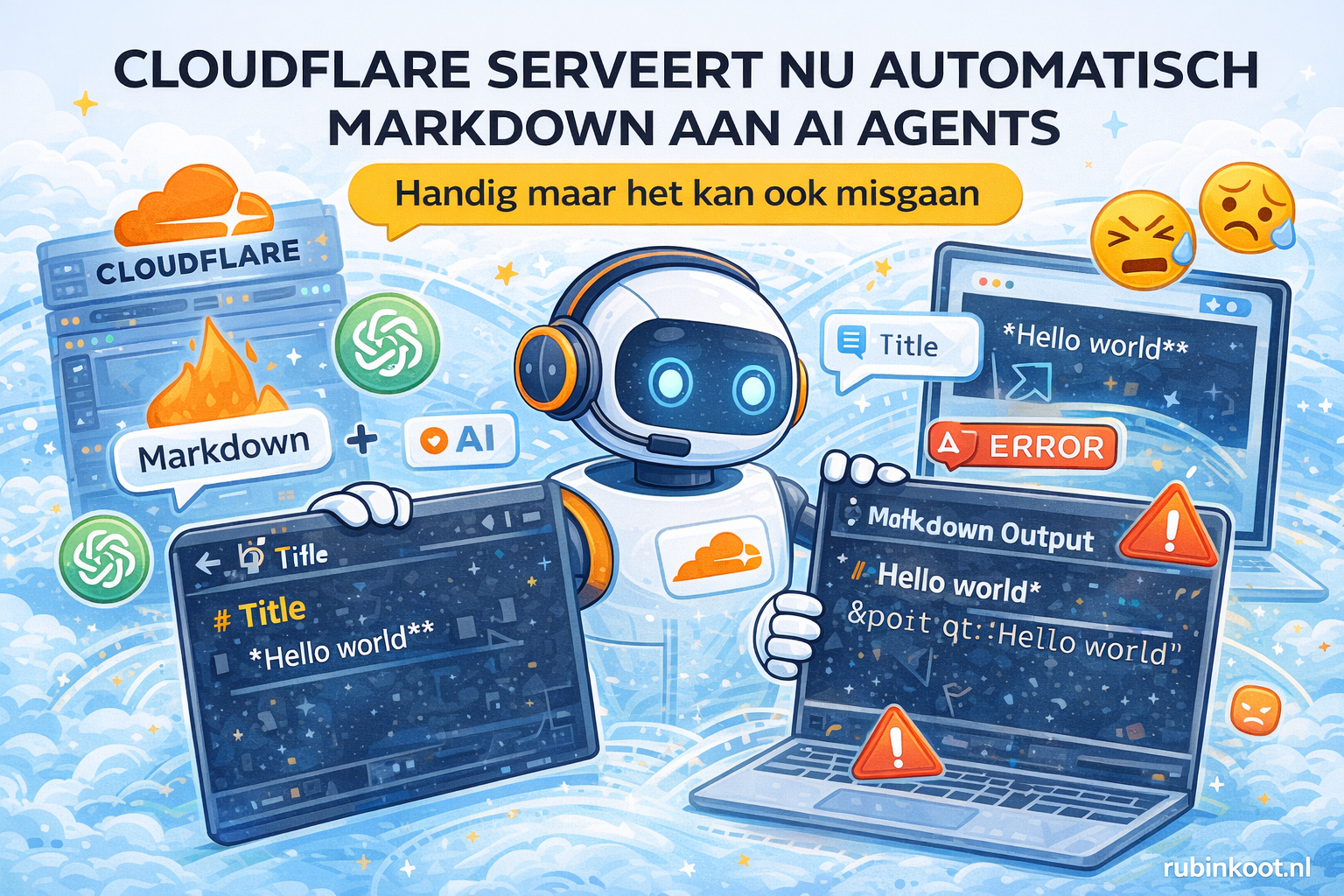 Cloudflare heeft iets gelanceerd waar je als ondernemer of marketeer even wakker van mag worden, niet omdat het meteen gevaarlijk is, maar omdat het de spelregels rond content en vindbaarheid opnieuw kan aanscherpen. De nieuwe functie heet Markdown for Agents. Daarmee kan dezelfde pagina, zonder extra URL, in een machinevriendelijke Markdown versie worden uitgeleverd aan AI crawlers en agenten. Dat scheelt volgens Cloudflare tot 80 procent aan tokens vergeleken met HTML. Efficiënt, zeker. Alleen zodra je verschillende representaties van dezelfde pagina gaat serveren, duikt het oude SEO spook weer op. Cloaking.
